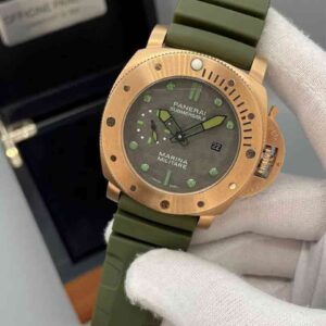 ساعت پنرای Submersible مردانه اتوماتیک قاب رزگلد بند رابر سبز صفحه خاکستریPanerai-2024-balck