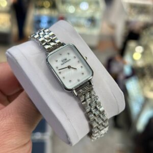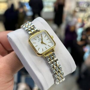 ساعت مچی زنانه دنیل ولینگتون (DW) صفحه مربع سفید طلایی بند استیل