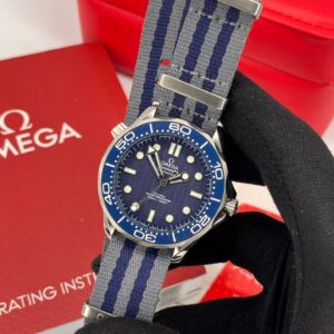 ساعت مچی مردانه امگا007 سیمستر اتومات بند برزنتی صفحه سرمه ای