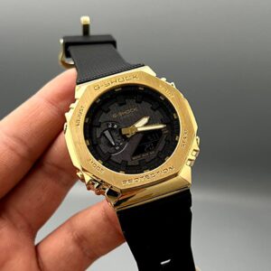 کاسیو جیشاک مدلGA-2100 قاب فلزی صفحه مشکی دور طلایی